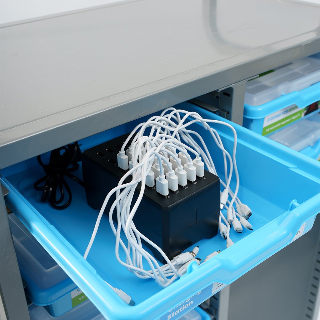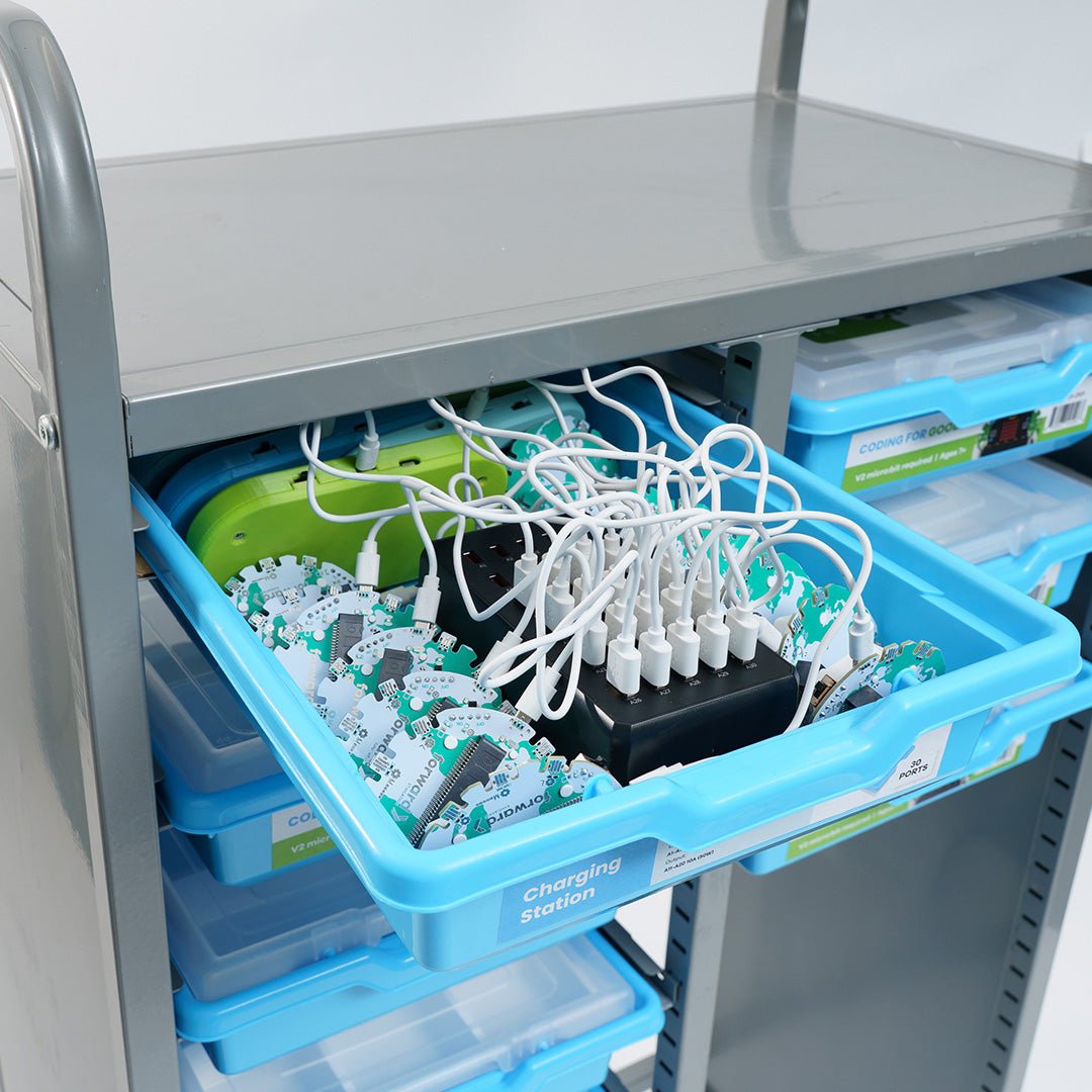 Store and charge up to 20 x Breakout Boards, CodeCTRLs, or CHARGE for micro:bit devices.